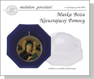 Awers medalionu przedstawia oblicze Matki Bożej Nieustającej Pomocy, nimb Maryi i Jezusa jest ozdobiony złotem płatkowym. Na rewersie widnieje napis: „Matko Nieustającej Pomocy wspieraj nas".