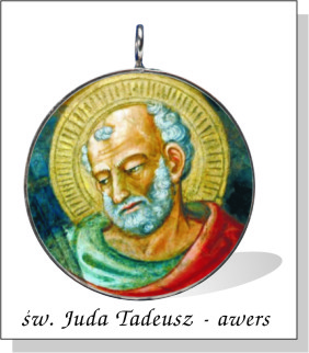 Św. Juda zwany Tadeuszem (znaczy „odważny”), był bratem Jakuba Mniejszego, jednym z dwunastu apostołów. Tradycja starochrześcijańska podaje, że w głoszeniu Ewangelii odznaczał się wielką gorliwością oraz czynieniem cudów w imię Jezusa. Ojcowie duchowi i święci wskazywali apostoła jako swojego opiekuna i orędownika wszelkich spraw u Boga. Uciekający się do wstawiennictwa św. Judy Tadeusza otrzymywali pomoc w chorobach, najcięższych pokusach, w smutku i rozpaczy, w niedostatku i ucisku oraz wszędzie tam, gdzie po ludzku pomoc wydawała się niemożliwa. A jeśli ktoś nie otrzymywał natychmiastowej pomocy, to zyskiwał umocnienie ducha dla wypełnienia Woli Bożej. Dlatego też apostoł jest uznawany za patrona spraw trudnych. Wersje medalionuw sprzedaży są dostępne wersje: