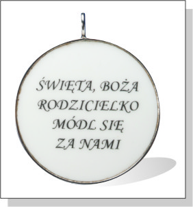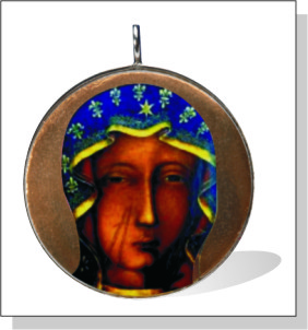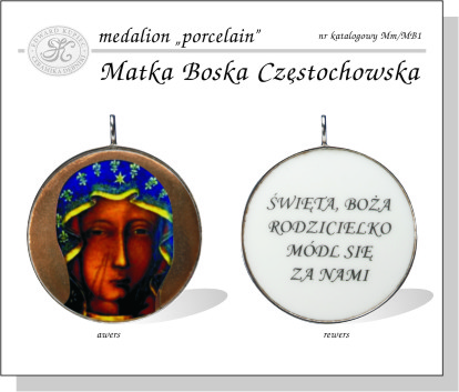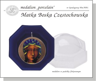 Awers medalionu przedstawia oblicze Matki Boskiej z obrazu częstochowskiego, nimb Maryi jest wykonany ze złota płatkowego wpalonego w szkliwo. Na rewersie widnieje napis: „Święta, Boża rodzicielko módl się za nami".